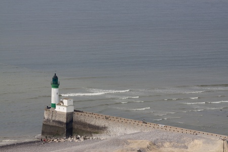Lighthouses and guidance at the entrance of the Port of Fecamp, Seine-Maritime, Normandy, France, Europe on the coast of Normandy in the English Channel in Spring
