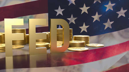 gold text fed and coins on Usa flag background for business concept 3d rendering