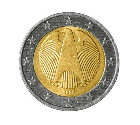 Two euro coin in front of a white background/isolated