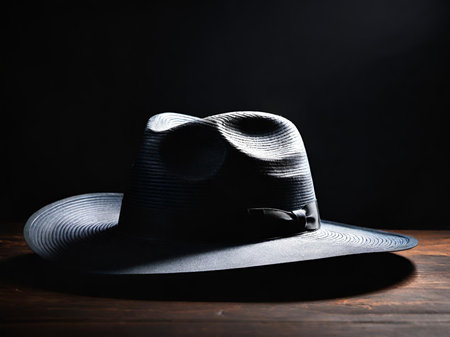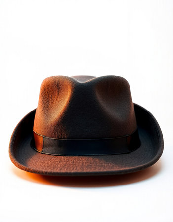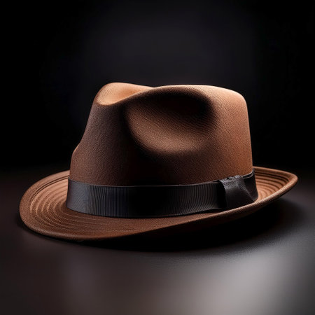 A bold composition featuring a classic brown hat placed on a dark textured surface, creating a refined and moody aesthetic.