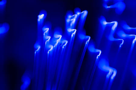 Optical fibers of fiber optic cable. Internet technology.Blue color