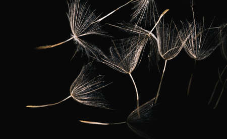 Stamens from large dandelions on a black background
