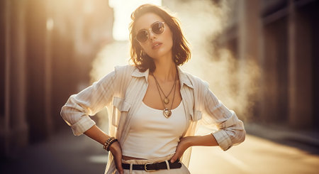 Beautiful young woman on the beach at sunset. Beauty, fashion.