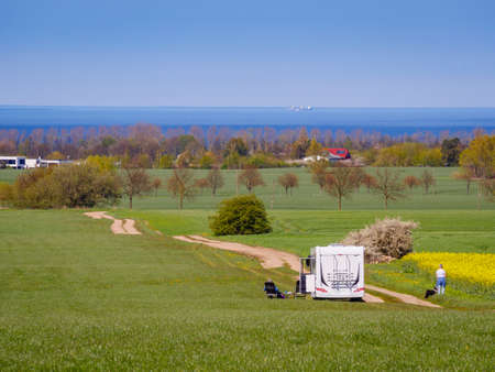 Ostseebad Laboe, Germany- September, 29th 2018: View from Laboe naval memorial to the knick landscape and coast of Stein and Marina Wendtorf