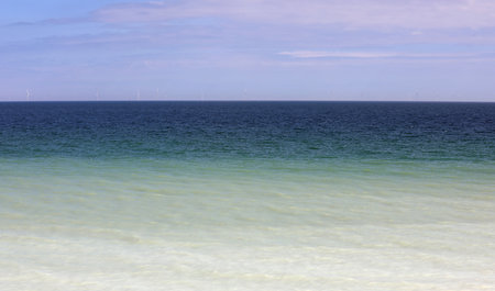 Baltic Panorama with a turquoise sea and sailing boats on the horizon on a sunny summer day