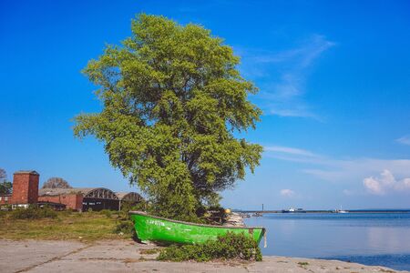 Baltiysk, Russia-may 15, 2016: Landscape with the sights of the Baltic spit on the background of the blue sky.