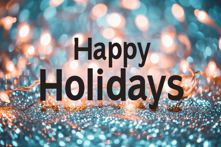 Merry Christmas and Happy Holidays greeting card on bokeh background
