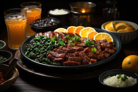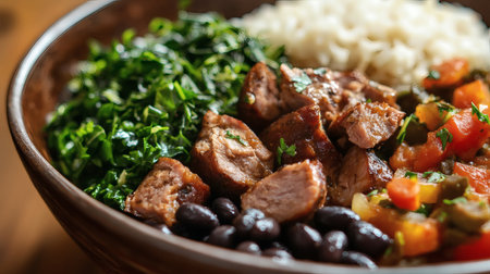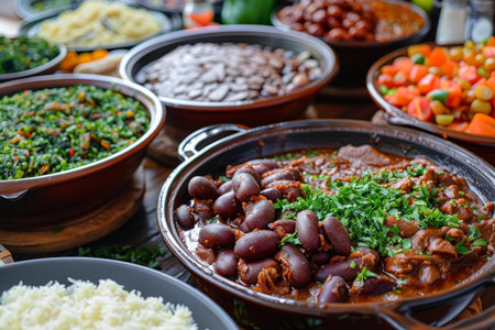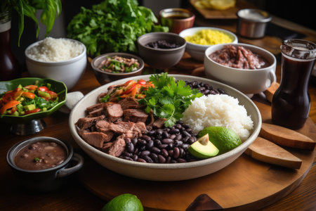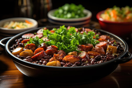 Hearty Brazilian feijoada with caipirinha and kale. ????, generative AI