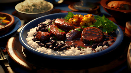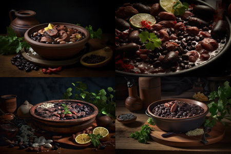 Feijoada Brazilian Food Collage, Black Bean Brazil Dish, Meat Rice Brazil Cuisine, Abstract Generative Ai Illustration