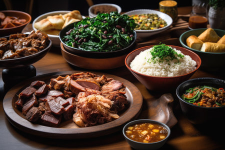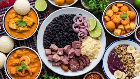 Brazilian banquet with feijoada, acaraj