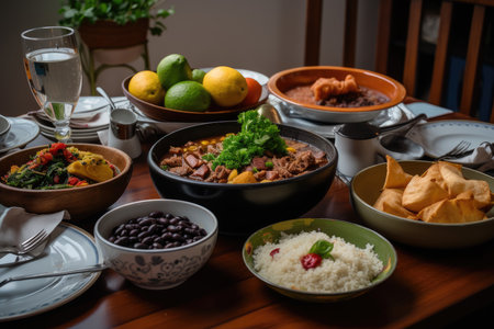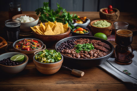 Juicy feijoada and colorful caipirinha on a Brazilian table., generative AI