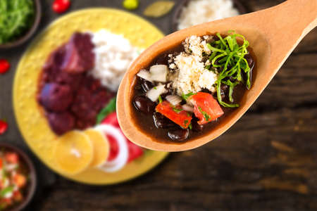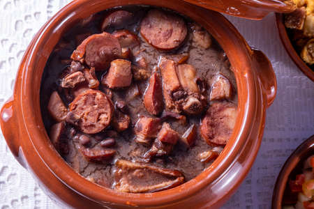 Typical dish of Brazilian cuisine called Feijoada, with black beans, bacon, sausage and pork