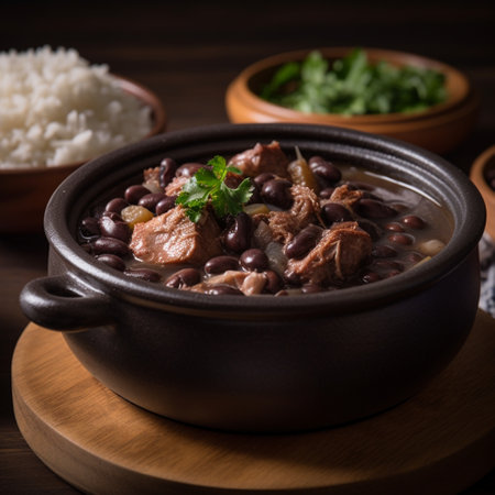 feijoada on the stovetop in a traditional black pot, created with generative ai