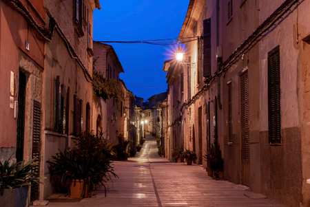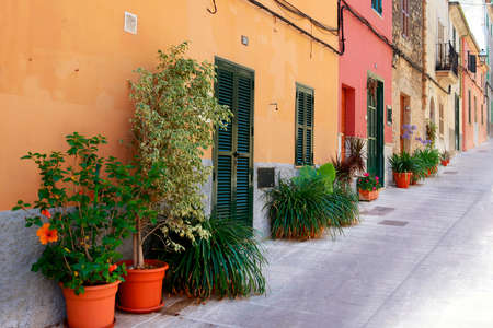 Beautiful narrow historic streets of Alcudia Old Town in Majorca Mallorca