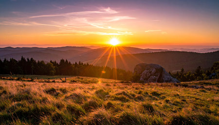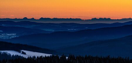Sunset behind mountains in national park Krkonose, Czech Republic
