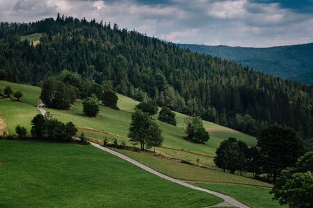 aerial view of a idyllic scenery in the Black Forest (Southern Germany) at summer time