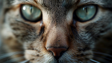 Portrait of a tabby cat with green eyes close-up