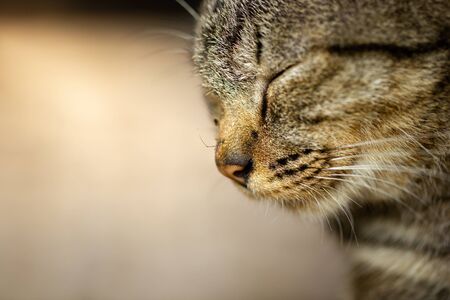 Mosquitoes on the cat's nose. Grey cats are sleepy. Copy space for text.