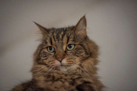 A non-pedigreed beautiful cat, looks at the camera, close-up portrait