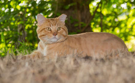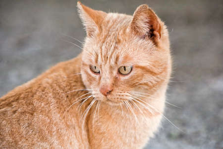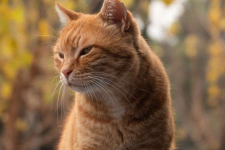 Close up of yellow domestic cat at outdoor