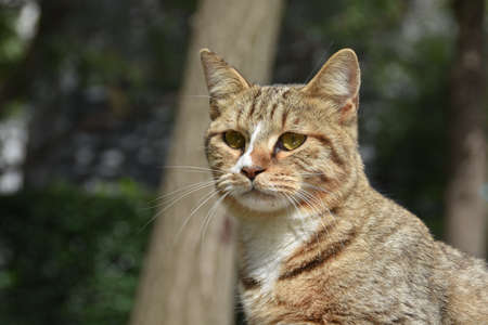 beautiful stray cat portrait looking at the camera