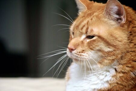 portrait of a cute red cat looking away. Profile, favorite pets