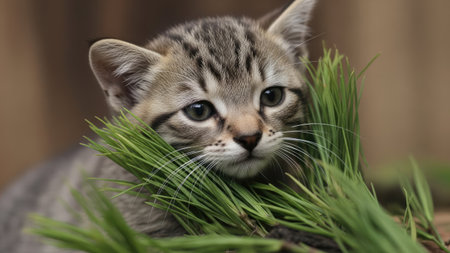 Feline Tranquility on Lush Green Grass: A Captivating AR 3:2 Experience