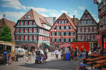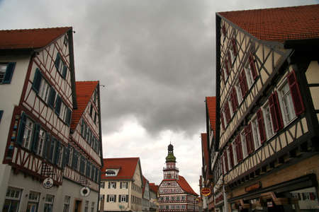 LEONGERB, GERMANY - OCTOBER,30,2017: Traditional fachwerk style in Olld town Leonberg, Germany, Bodensee, Bavaria,Baden-Württemberg.