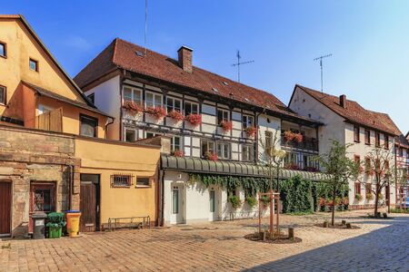 FORCHHEIM, GERMANY - August 12 2015: Historical buildings on a hot summer day in the inner city of the Franconian town of Forchheim. Clear blue sky and Summer Heat
