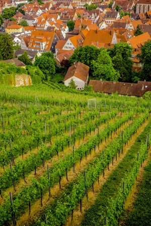 Sunny vineyard scenery around Niedernhall, a town in the Hohenlohe district in Southern Germany