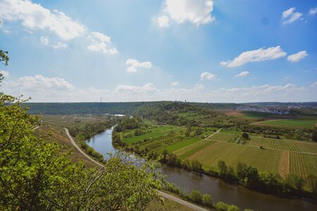 Vineyard overlooking the river Neckar, Landscape of Hessigheim, Germany