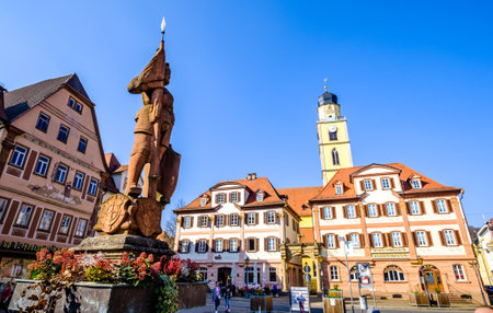 Old national German town house in Bietigheim-Bissingen, Baden-Wuerttemberg, Germany, Europe. Old Town is full of colorful and well preserved buildings.