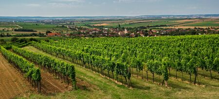 Nice vineyard plant with small village, agriculture, south moravia, Czech republic