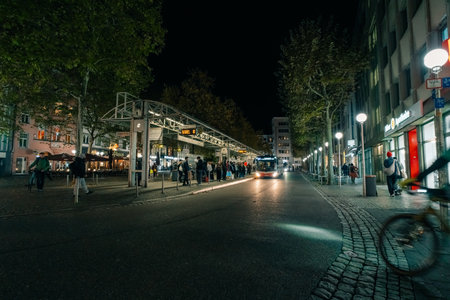 Night street in Bonn, Germany - 1 Oct 2025. High quality 4k footage
