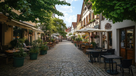 Historic town square with cobblestone streets and charming cafes, a blend of old-world charm and modern life.