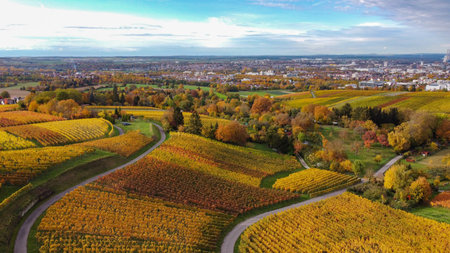 Struempfelbach - Vineyards at Weinstadt region - beautiful landscape in autumn close to Stuttgart, Baden-Wuerttemberg, Germany