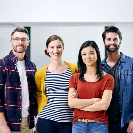 Innovation makes for our success as a team. Portrait of a team of designers standing together in the office.