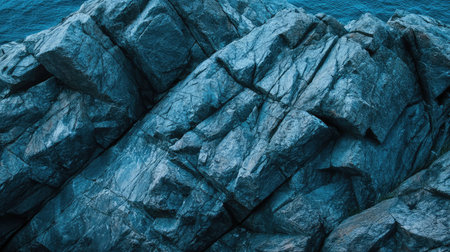 blue green rock texture toned the rough surface of the mountain close up dark teal stone background with space for design crushed collapsed crumbled