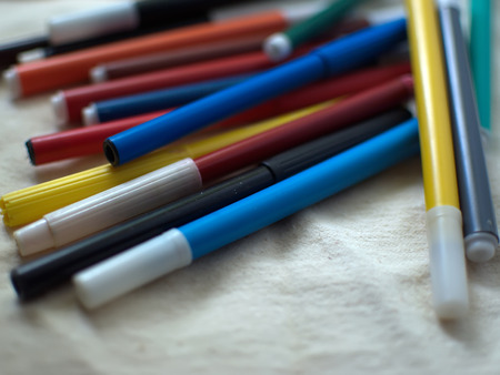 felt-tipped pen, a felt marker a variety of colors, placed on the edge of the frame, uneven ground, ready to create works and ideas