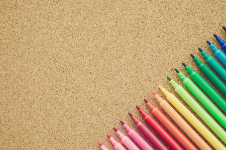 Color pen on cork wood background
