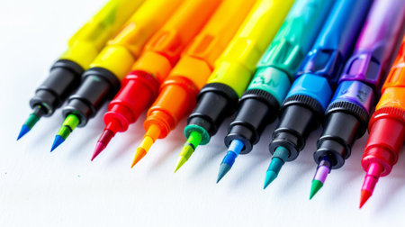 A vibrant collection of markers displayed in a rainbow gradient, perfect for artistic projects, school supplies, and creative activities. Bright colors inspire creativity.