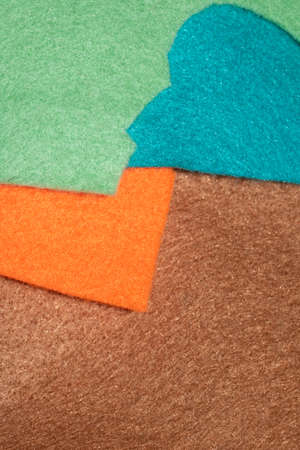 Abstract colorful geometric felt texture background. Bright yellow, blue, red colors felt textile for craft. Top view, flat lay