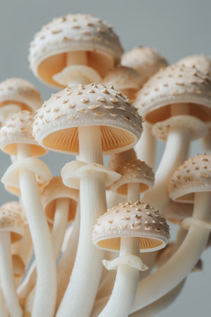 Cluster of pristine white mushrooms with a focus on their elegant stems and caps