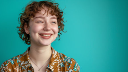 A smiling Caucasian young beautiful woman from France, embodying warmth and joy. Her relaxed demeanor and carefree expression convey a sense of happiness and approachability. Generative AI.