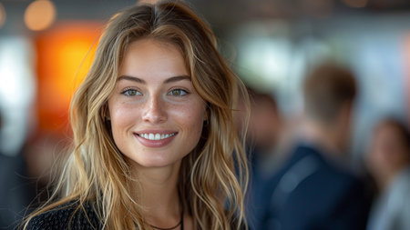 Portrait of a beautiful young woman smiling at camera in a restaurant