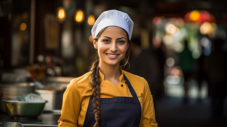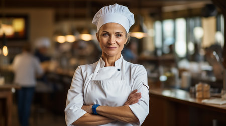 Portrait of smiling female chef standing in the kitchen at her restaurant