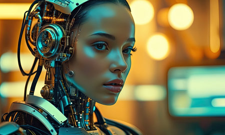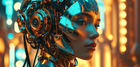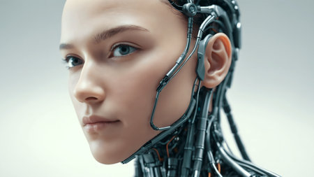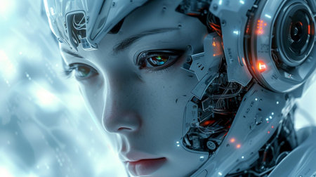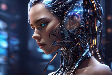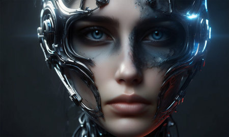 Close-Up of a Cyborg Woman's Face: A Vision of Advanced AI and Futuristic Technology