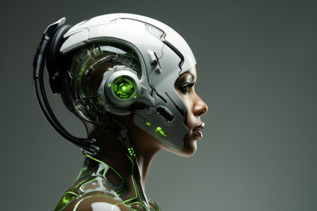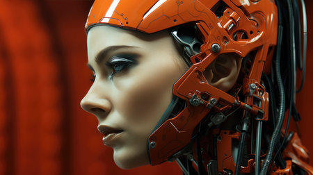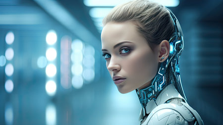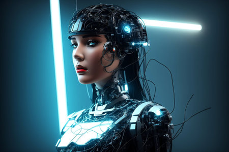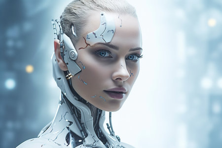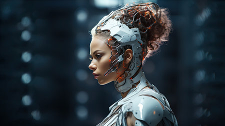 Stunning female cyborg on gradient background for futuristic technology concept