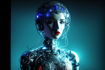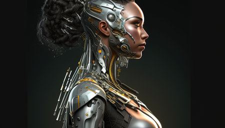 fictional female cyborg digital art illustration, Generative AI