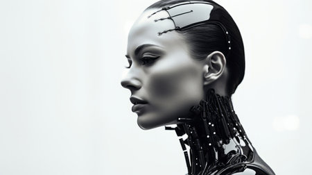 A glamorous woman resembling an android, exuding futuristic charm. Created with Generative AI.